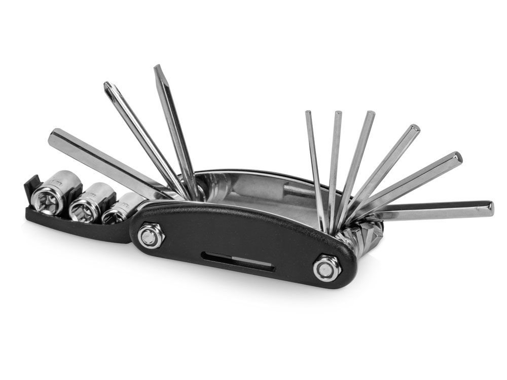 Многофункциональный инструмент от Roq сочетает в себе целых 16 функций: 6 шестигранных ключей (№ 2, № 2,5, № 3, № 4, № 5, № 6), 4 ключа (8 мм, 10 мм, 15 мм, 14GE), адаптер, крестообразную отвертку, шлицевую отвертку и 3 насадки (№ 8, № 9, № 10). - наиболее популярные ключи и отвертки в одном приспособлении - инструменты выполнены из нержавеющей стали - боковые накладки из пластика брендируются с обеих сторон - удобно ложится в руку
