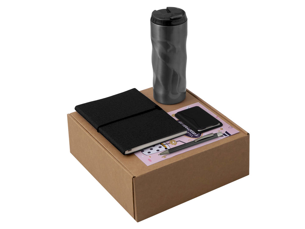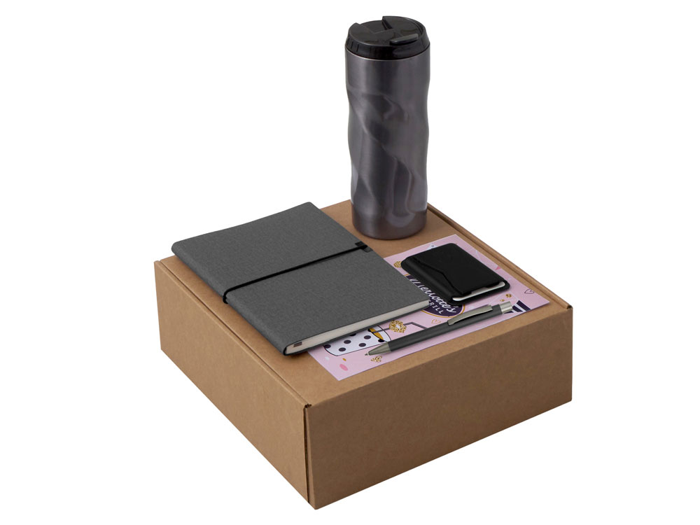 Набор "Firm" станет отличным подарком для сотрудников, клиентов и партнёров, подчеркнёт внимание к их комфорту и заботу о деталях. Он уместен как корпоративный подарок на праздники, юбилеи и деловые мероприятия, так и в качестве welcome-набора для новых коллег. Набор объединяет всё необходимое для комфортного рабочего дня: Блокнот для идей, заметок и планов на день; Ручка, которая всегда под рукой; Стильная термокружка с двойными стенками из нержавеющей стали сохранит ваш напиток горячим в течение 6-х часов ( >50° градусов; Картхолдер имеет минималистичный и современный внешний вид, который идеально дополнит любой смартфон. Складная подставка обеспечит вам удобство при просмотре видео, видео-звонках или чтении. Открытка для персонального послания; Универсальный ложемент обеспечивает аккуратное размещение и надёжную фиксацию элементов, делая набор эффектным и презентабельным при вручении. Дополнительное преимущество — набор доступен в конструкторе наборов: компоненты можно заменить и собрать индивидуальный вариант под стиль компании или вкусы получателя.