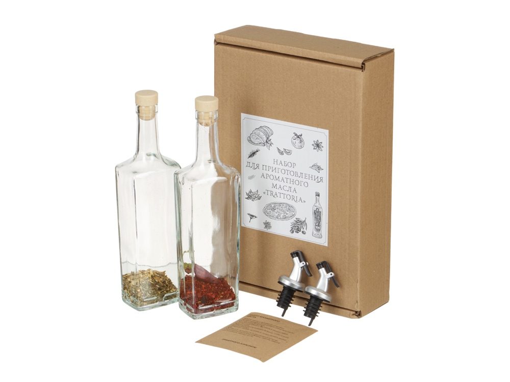 Рецепт ароматного масла: · Залейте масло в бутылку со специями. · Мы рекомендуем использовать оливковое масло или любое растительное. · Закройте пробкой и поставьте в темное место на 10-14 дней. · Периодически стряхивайте бутылки, чтобы специи перемешивались. · Откройте пробку, вы должны почувствовать аромат трав. · Вставьте в горлышко бутылки удобный дозатор. · Используйте масло для гарниров, салатов, закусок или поливайте горячие тосты. Состав: - С перцем чили (перец чили, перец болгарский сладкий, семена кинзы, семена укропа, базилик, томат сушеный, сумах, зира) - С цедрой лимона и травами (цедра лимона, орегано, розмарин, тимьян)