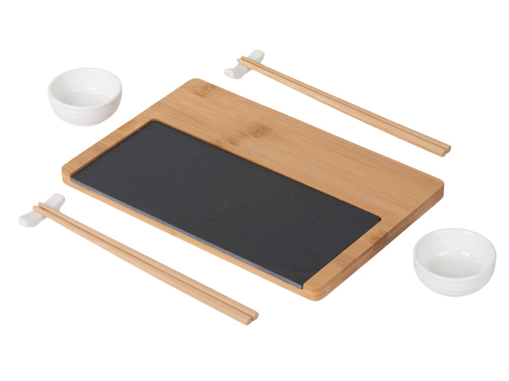 Набор для суши "Maki" – идеальный выбор для ценителей японской кухни, объединяющий стиль и практичность. Комплект включает всё необходимое для красивой и удобной сервировки суши и других азиатских блюд: - Две керамические пиалы для соусов или гарниров, идеально подходящие для подачи соевого соуса, васаби, имбиря и других приправ. - Две керамические подставки для палочек, которые обеспечивают удобство и чистоту, удерживая палочки на месте и защищая их от контакта с поверхностью стола. - Две пары деревянных палочек, которые комфортно держатся в руке и добавляют аутентичности процессу трапезы. - Бамбуковая доска-подставка добавляет натурального акцента и служит базой для подачи, позволяя разместить блюда на стильной основе. - Сланцевая доска из натурального камня придаёт элегантность сервировке и сохраняет прохладу подаваемых блюд, что особенно важно для суши и сашими. Каждый элемент упакован в защитную вставку-ложемент внутри коробки, обеспечивая безопасность при транспортировке и удобство хранения. Этот стильный и продуманный суши-набор идеально подойдёт для дома, подарка или для создания атмосферы настоящего японского ресторана прямо за вашим столом.