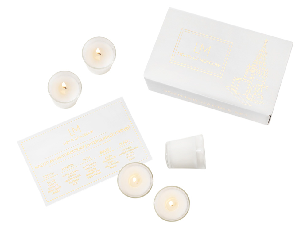 Подарочный набор ароматических свечей - это не только прекрасный, необычный подарок, но и отличный способ познакомиться брендом Lights of Moscow и его эксклюзивными ароматами. Scented candle set состоит из 5 ароматов со своей особенной историей, ассоциацией. Touch Притягательный и соблазнительный аромат во главе со спелой вишней, в которой контрастируют сладкие и терпкие, яркие и таинственные ноты. Красная и чарующая она пробуждает неутолимое желание и будоражит фантазию, завершая композицию незаметным шлейфом чувственных нот: бобами тонка, бергамота, ванили и сандалового дерева. Power Энергичная, но в то же время утонченная композиция, напоминающая морские брызги и дуновение ветра. Глубокие, акватические ноты постепенно раскрываются в тандеме с зелёным яблоком и белым мускусом. Бодрящий и свежий аромат завершается оттенками ландыша и мха, подчёркивая прохладу и романтику всей пирамиды нот. Secret Чувственная и романтическая орхидея - это цветок любви и красоты, олицетворяющий великолепие и совершенство. Женственная композиция дополнена оттенками цветка апельсина, который подчеркивает фруктовые акценты, а дополнение в качестве пленительных нот фиалки, мускуса и дыни придают особенную глубину композиции. Rich Это аромат роскоши, атмосфера светского мероприятия, проходящего в дорогом зале, где собрались леди и джентельмены. Листья табака имеют пряный и в тоже время свежий аромат, он прекрасно дружит с ванилью, усложняя композицию, делая её более дорогой и утонченной. В то время как сухофрукты и бобы тонка добавляют интригующей ноты аромату. Black Дымный и загадочный аромат с яркими нотами смолы и ладана ассоциируется с уверенностью и элегантностью. Восточно-древесная композиция дополнена восхитительным, интригующим шлейфом пало санто, кожи и чёрного перца. Комплектность: - Подарочная коробка с ложементом и брендированной лентой - 1 шт. - Свечи брендированные 5 шт.*50 мл. - Открытка - 1 шт. Условия хранения: — Свечи, аромасаше, аромадиффузоры, SPA-наборы следует хранить при температуре +18…+24 °C, вдали от источников тепла, сквозняков и прямых солнечных лучей. — Рекомендуемая влажность — не более 50%. — Избегайте длительного воздействия яркого света.