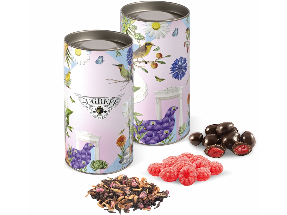 Подарочный набор с чаем, леденцами и вишней в шоколаде в тубусе