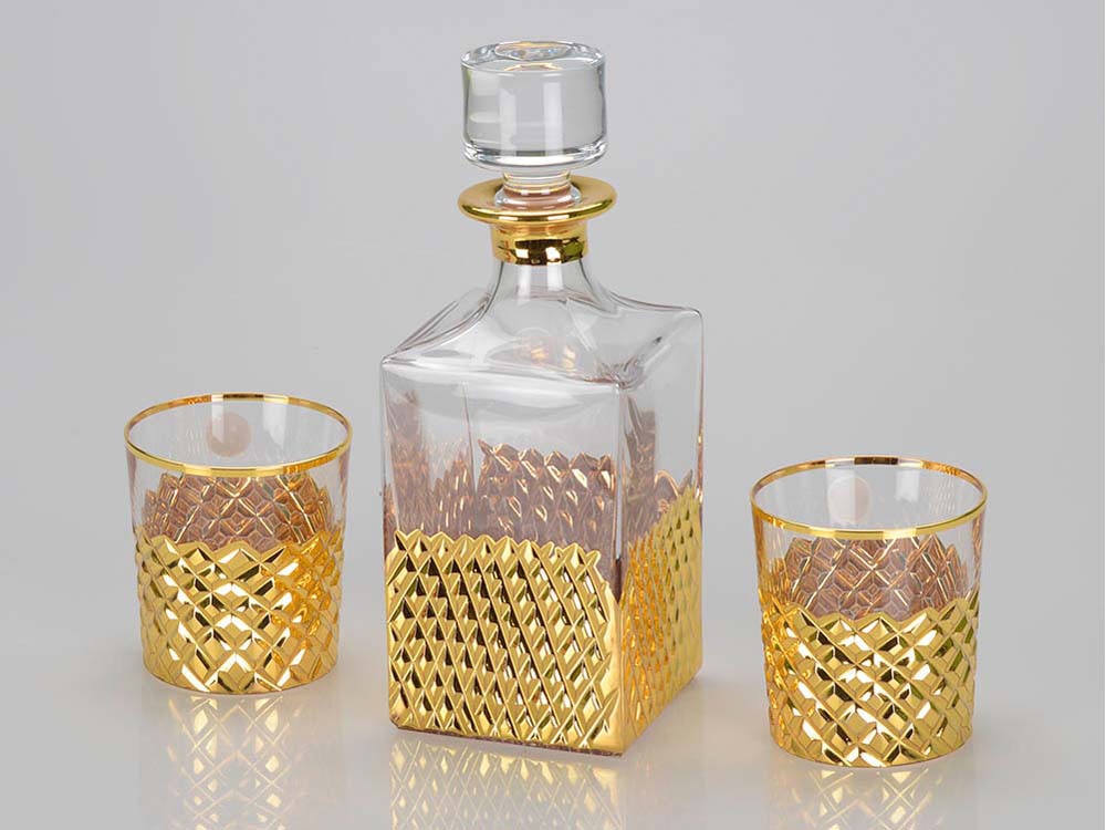 Подарочный граненый стакан «Россия» с металлической накладкой 'Двуглавый орел'. Накладка изготовлена методом чеканки из алюминиевого сплава с декоративной отделкой «под золото». Стакан окрашен в цвета флага РФ. Упаковка подарочная «винтаж».