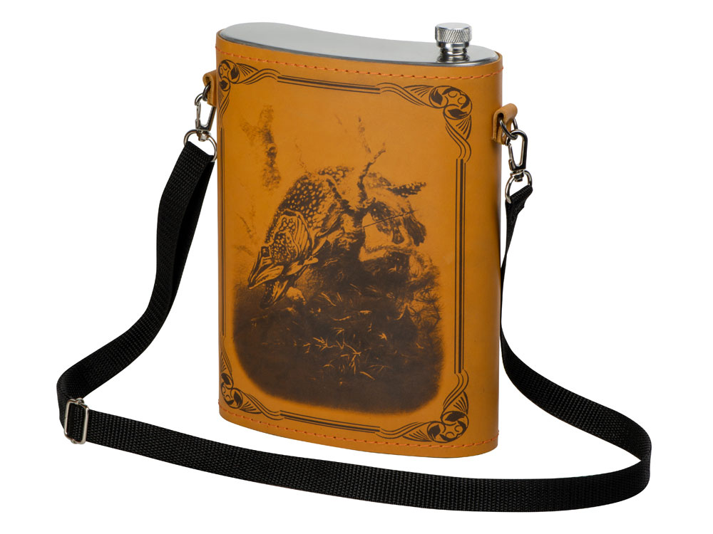 Фляга 2л в оплетке из натуральной кожи с нанесением рисунка методом художественного выжигания.