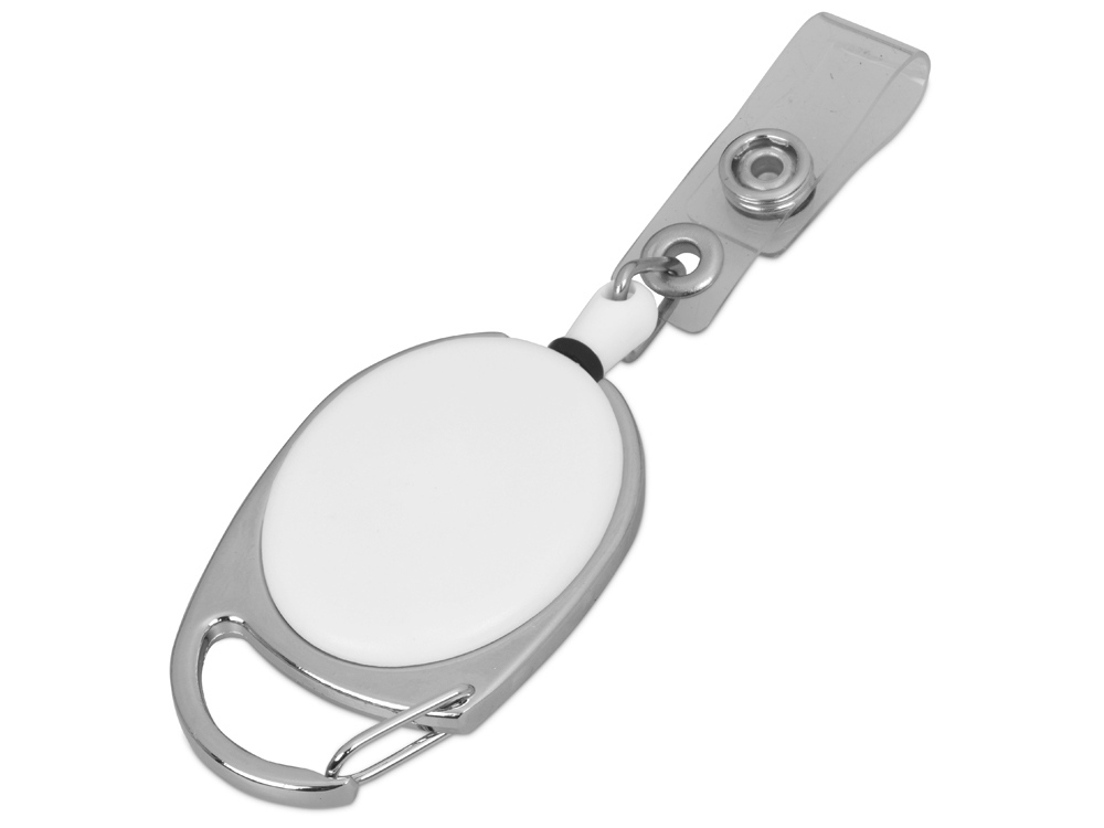 Ретрактор надежно крепится к поясу или другим вещам при помощи металлического карабина. Бейдж или пропуск удобно закрепляется кнопочным механизмом с петлей. Длина шнура - 90 см.