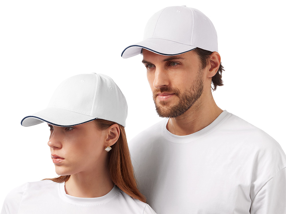 Бейсболка Canopy, белая с темно-синим кантом