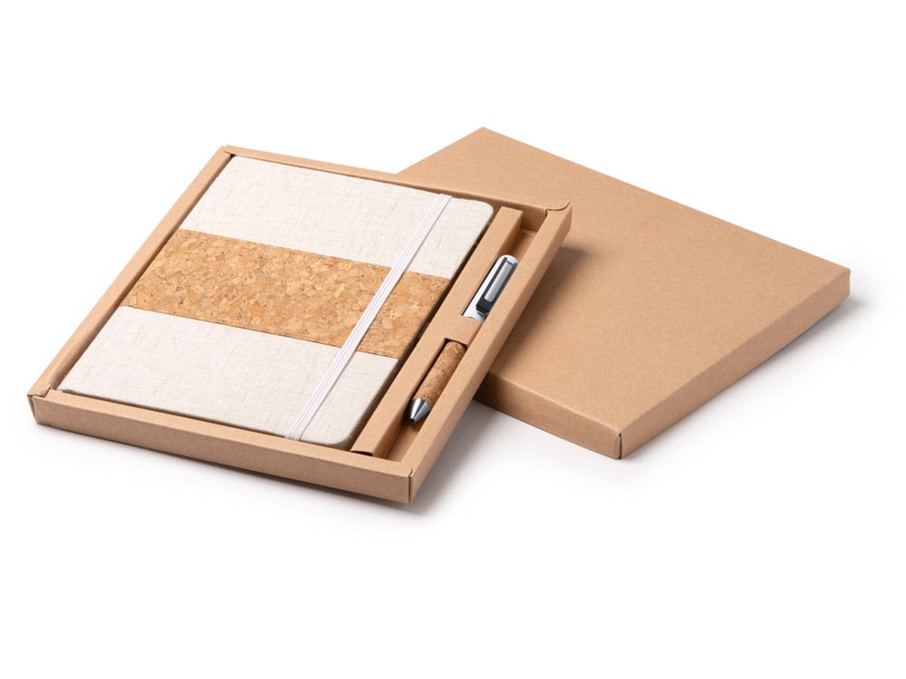 Набор блокнот с ручкой из пробки и хлопка «Beret»