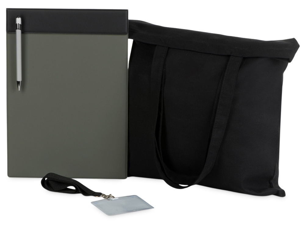 Бизнес-блокнот "Biggy", B5 формат, черный, серый форзац, мягкая обложка, в клетку