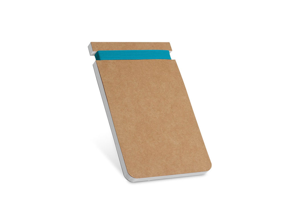 Блокнот формата B7 с 120 страницами без линовки из вторично переработанной бумаги и обложкой из картона. Вид нанесения, рекомендуемый поставщиком: трансфер, трафаретная печать, тампопечать