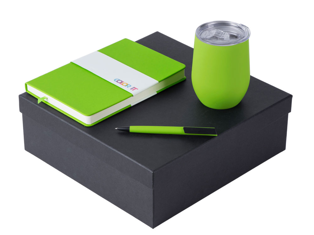 Color It — линейка, в которую входят хиты мерча в десяти самых популярных цветах. Еще никогда собрать сет под свой брендбук не было так просто. Широкая цветовая палитра серии позволяет создать идеальный набор в едином оттенке Pantone. Все товары имеют тактильно приятное покрытие софт-тач. Сет поставляется в коробке: мы продумали все, включая подарочную упаковку, за вас — осталось нанести лого! Термокружка оснащена крышкой-слайдером с силиконовым кольцом. Благодаря вакуумной изоляции и двойным стенкам, она сохраняет напитки горячими в течение 6 часов, а холодными - 12 часов. Бизнес-блокнот в гибкой обложке имеет ляссе в тон обложки и среза. Бумажный блок разлинован в линейку и выполнен из бумаги, полученной из древесины из специальных восполняемых лесных ресурсов, имеет сертификат FSC. Тонкое письмо ручки обеспечивается пишущим узлом с толщиной письма 0,5 мм с нажимным механизмом. Ручка имеет сменный стержень, поэтому такой мерч прослужит дольше обычной одноразовой ручки, долго напоминая о вас клиентам. - объём термокружки: 370 мл; - блокнот А5 128 листов; - ручка с необычным слайдером; - подарочная упаковка из картона, оклеенного дизайнерской бумагой уже включена в набор