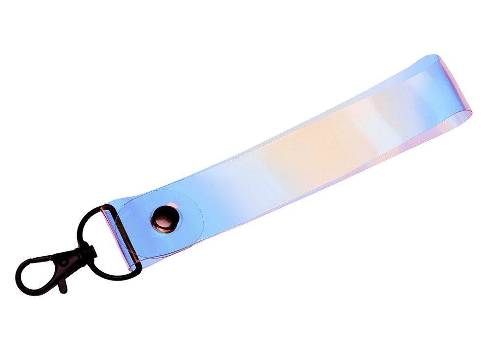 Стильная голографическая ремувка из ПВХ. Она эффектно переливается цветами от синего до золотого, притягивая взгляды. Яркий предмет, который создаст вау-эффект от вашего мерча. Можно использовать как аксессуар для ключей или сумочный обвес.