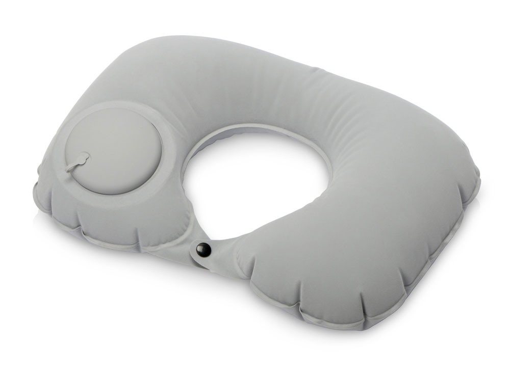 Подушка надувная дорожная в футляре; черный; 43,5 х 27,5 см; твил; шелкография