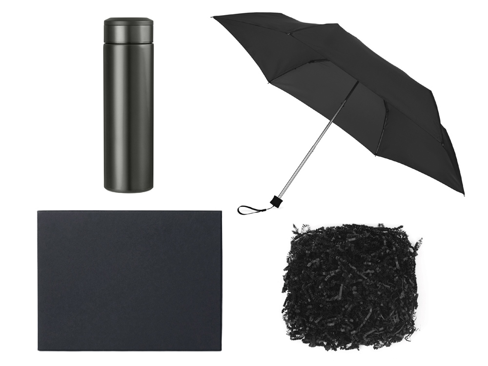 Такой набор подойдет как для городских прогулок, так и для выездов на природу. Термос сохранит ваш напиток горячим, а зонт защитит от дождя.