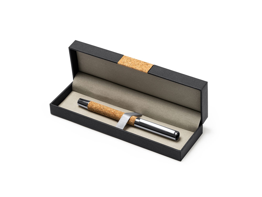 Ручка шариковая FRESCO синий/темно-серый, металл, пластик, ,бамбук, софт-покрытие