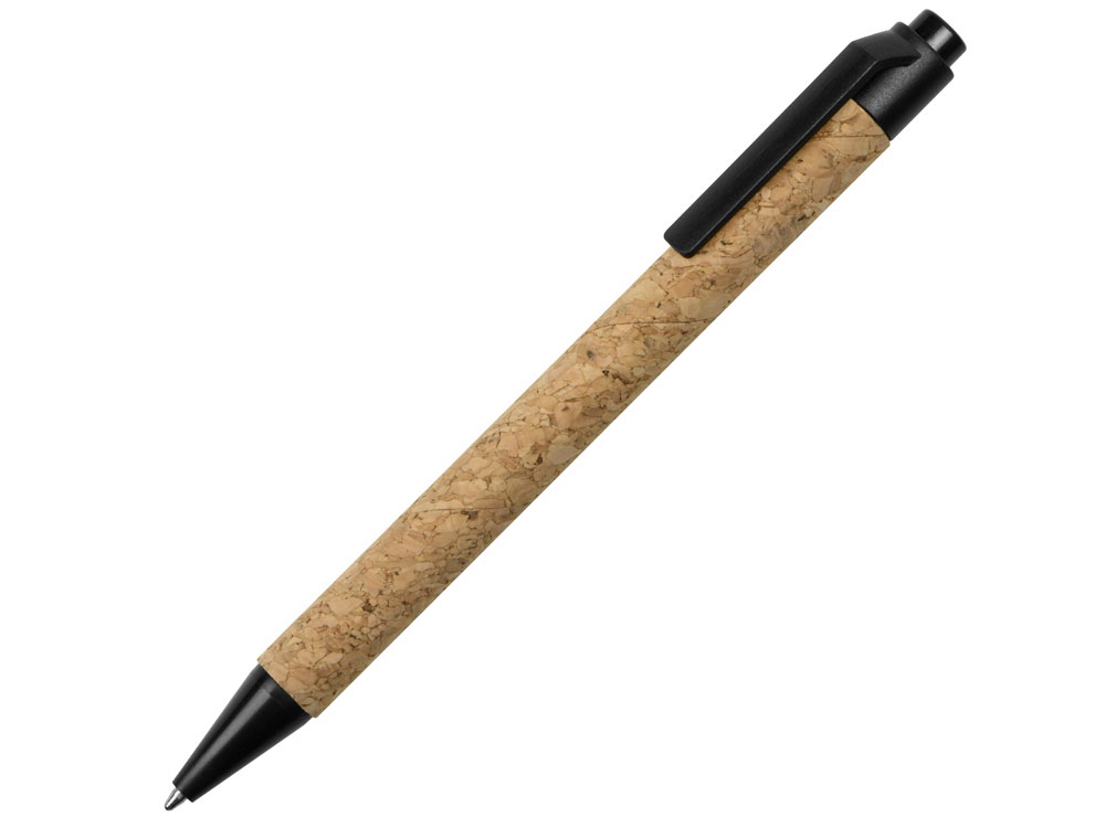 Шариковая ручка с корпусом из пробки крупной текстуры и широким металлическим клипом для нанесения логотипа.