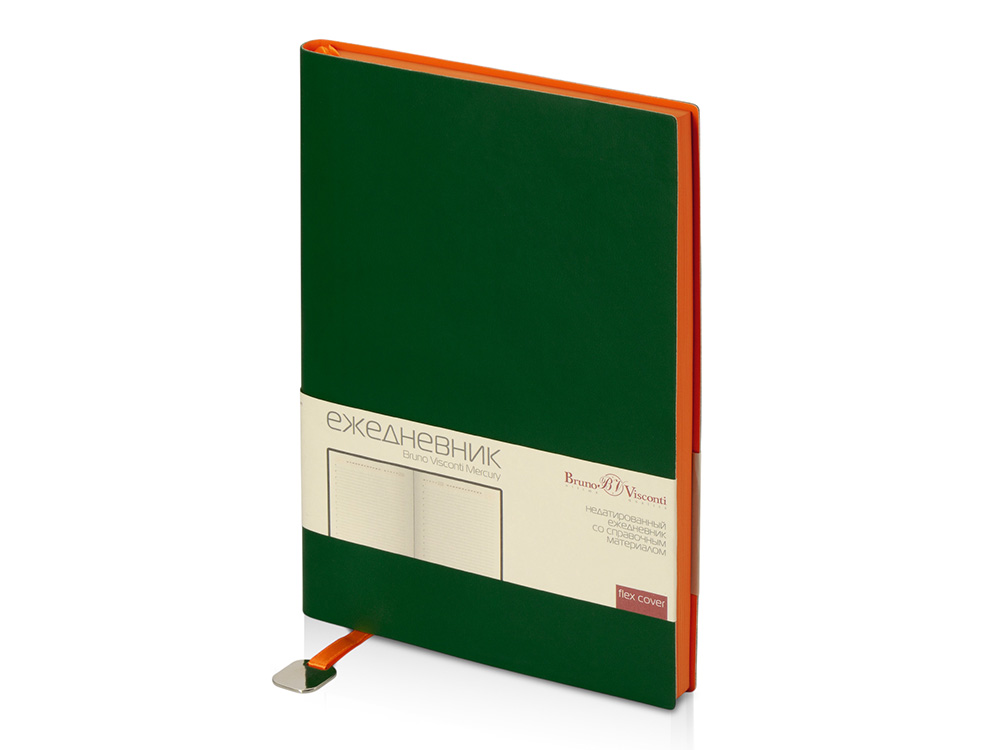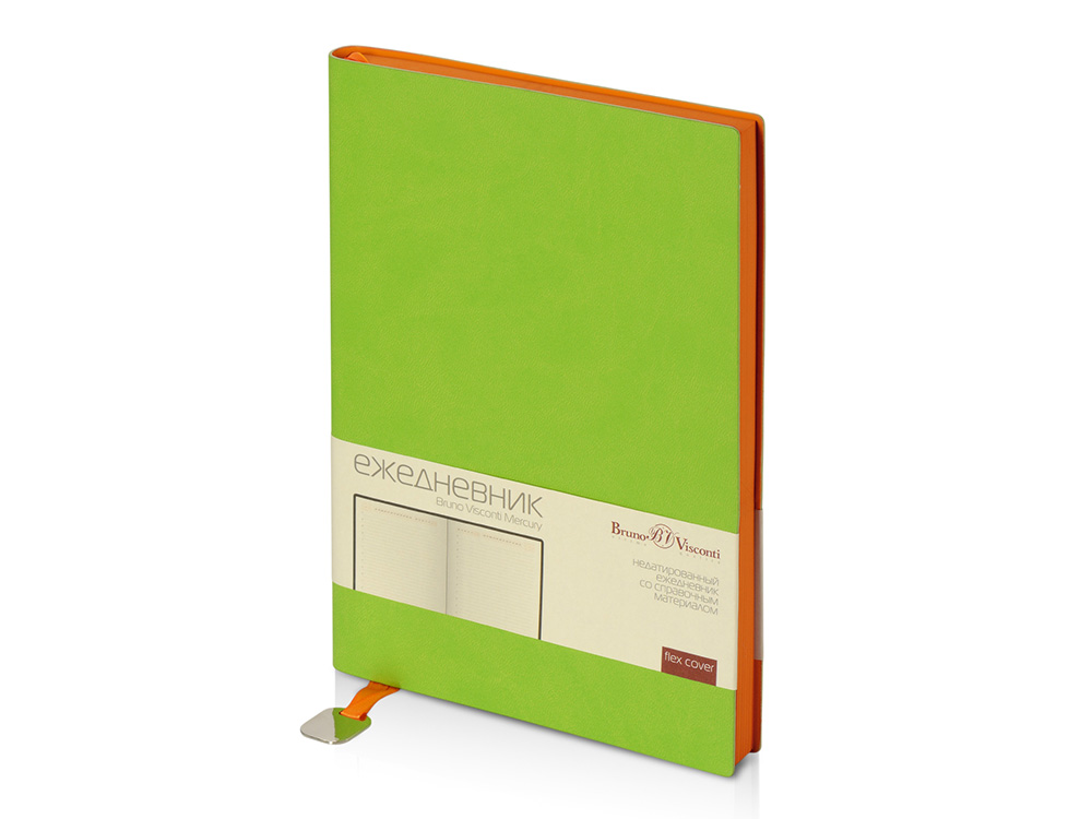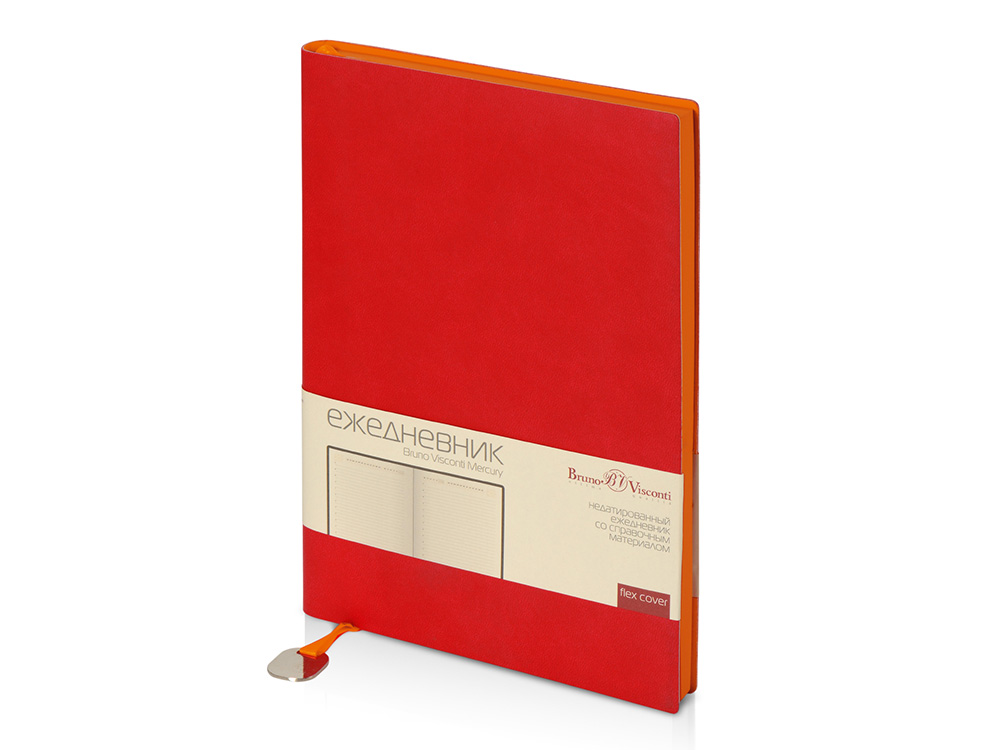 Недатированный ежедневник «Mercury» от бренда Bruno Visconti - это качественный корпоративный подарок по выгодной цене, произведенный специально под персонализацию. Представлен в современном формате А5. Обложка ежедневника выполнена из современного переплетного материала с двойной закладкой с шильдом. Цветной край блока, а также отделка листов цветными деталями - это переплетение технологических новинок и оригинальных дизайнерских решений.