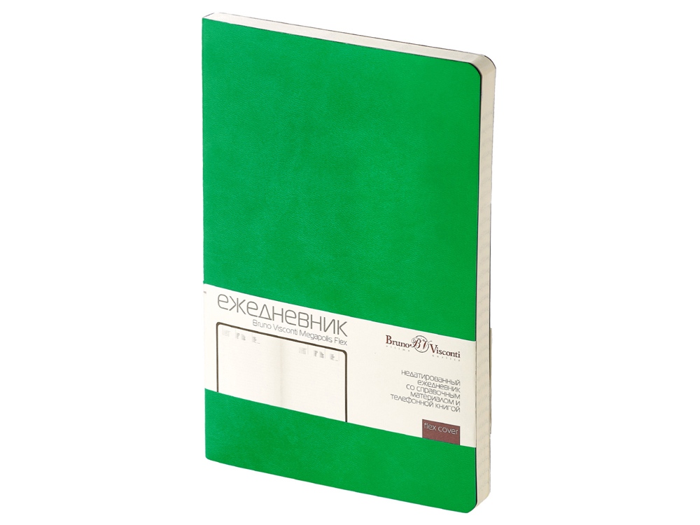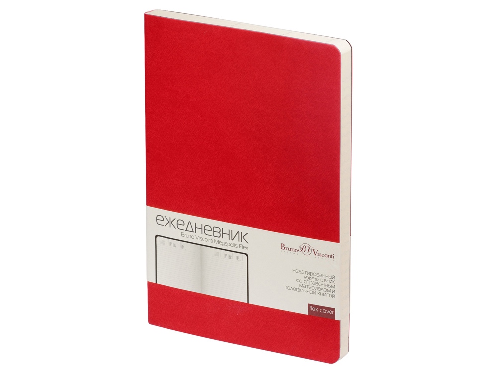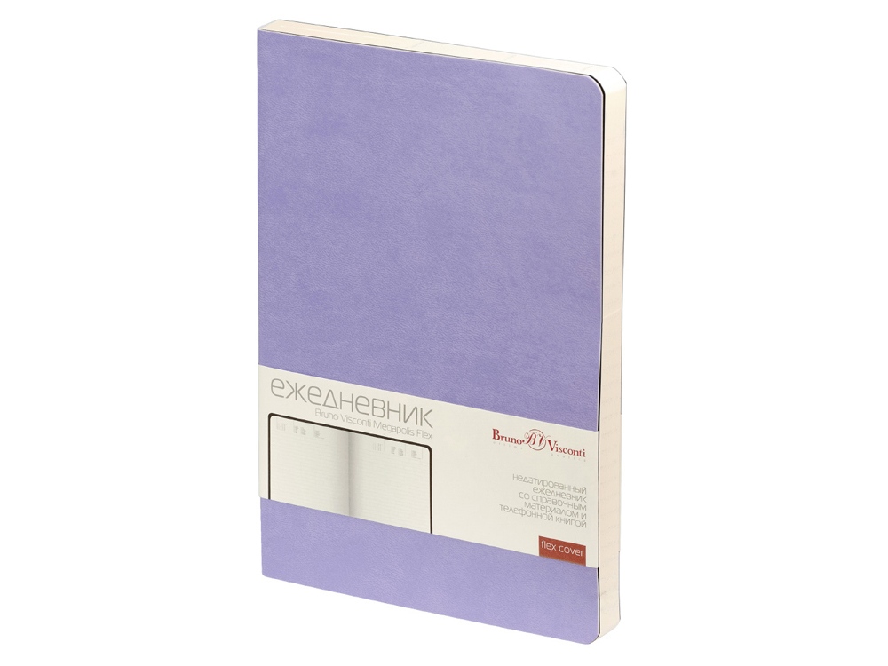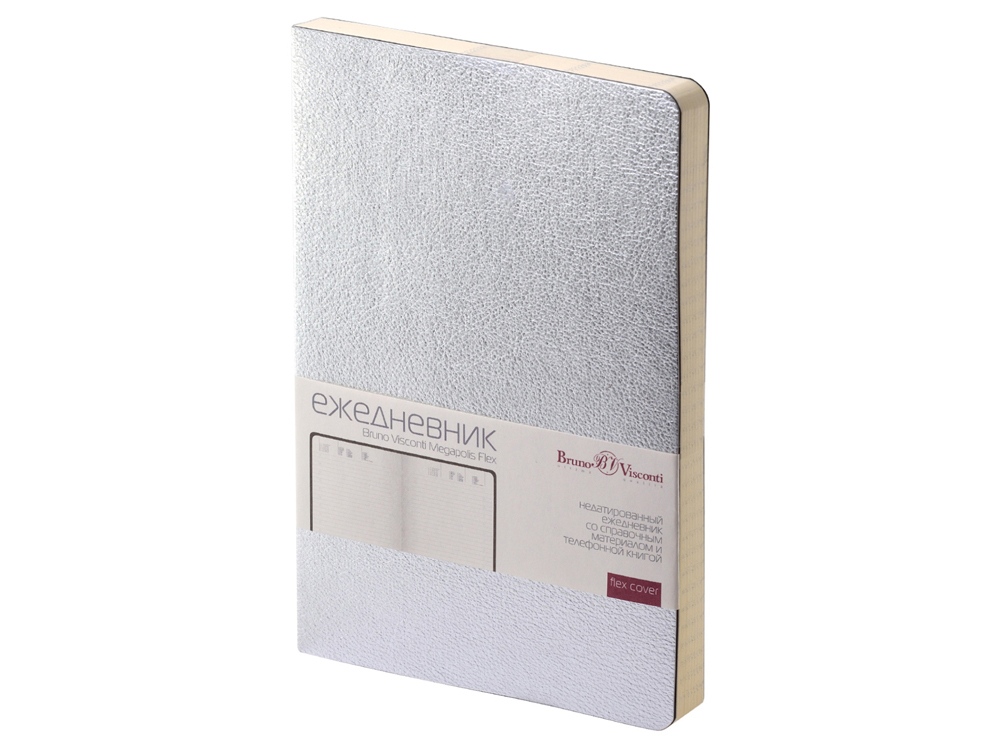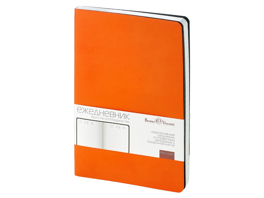 Недатированный ежедневник «Megapolis Flex» от бренда Bruno Visconti - это качественный корпоративный подарок по выгодной цене, произведенный специально под персонализацию. Представлен в универсальном формате А5 и состоит из 272 страниц. Элегантная закругленная flex обложка из гладкого кожзама имеет гибкую конструкцию и приятна на ощупь. А интегральный переплет позволяет сэкономить место в деловой сумке или портфеле – ежедневник можно просто свернуть в трубку или согнуть пополам.