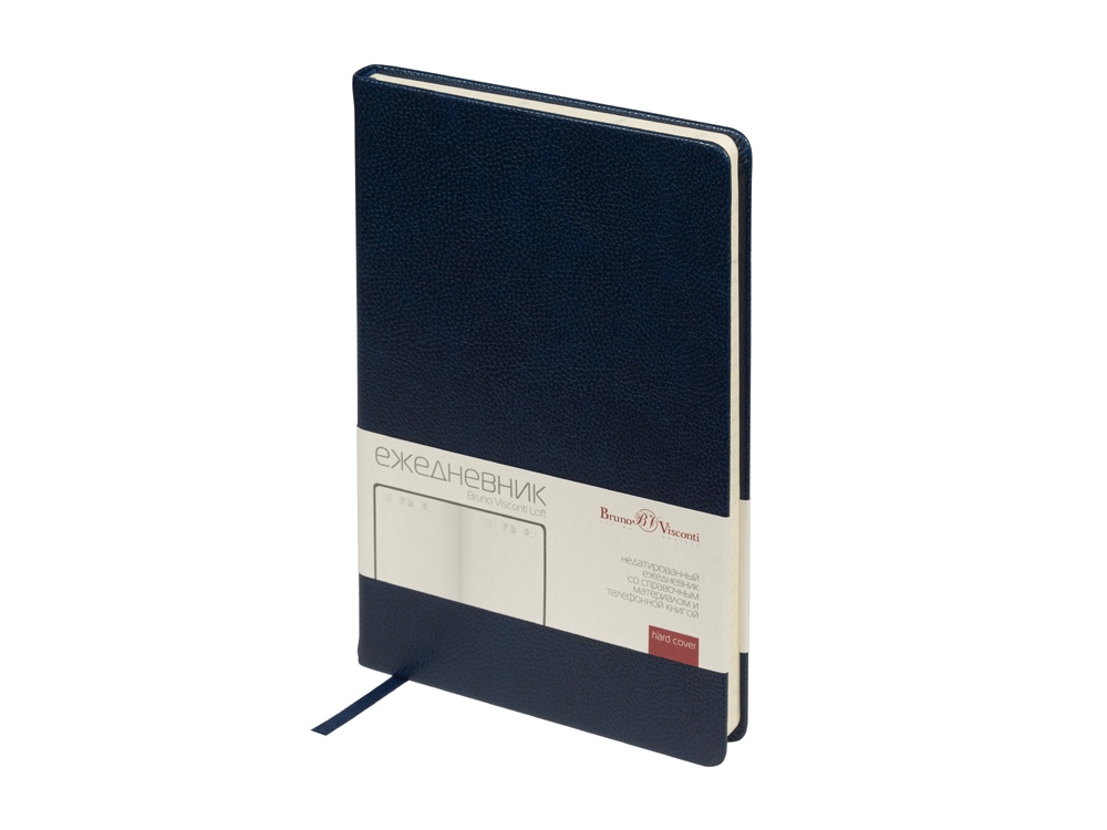 Классический ежедневник из коллекции London формата А5, недатированный. Лаконичная модель в ярком исполнении: гибкая обложка синего цвета с контрастной или в цвет обложки нашивкой. Выполнен из качественной и прочной искусственной кожи, крепление внутреннего блока - книжный переплет, закладка- ляссе. Углы обложки скруглены. Внутри есть страница для личных данных, а также блок справочной информации (часовые пояса, аэропорты, телефонные коды, размеры одежды, автомобильные коды, римские цифры, расход калорий, формат бумаги, единицы измерения, штрихкоды, распад алкоголя в крови, города миллионники РФ и СНГ, национальные праздники, термины международной торговли, температура, скорость, давление, буквенные коды стран, энергетическая ценность продуктов, страны мира).