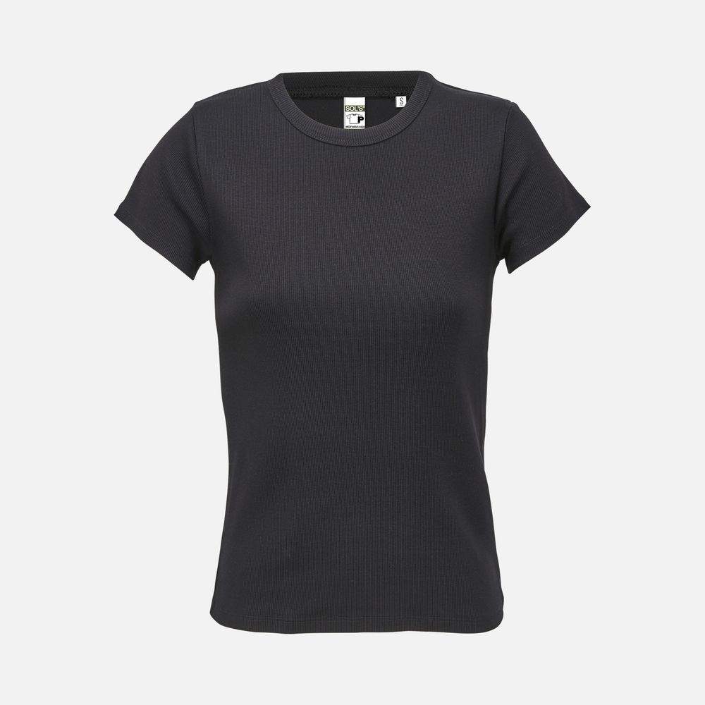 Приталенная женская футболка в рубчик из гребенного хлопка.