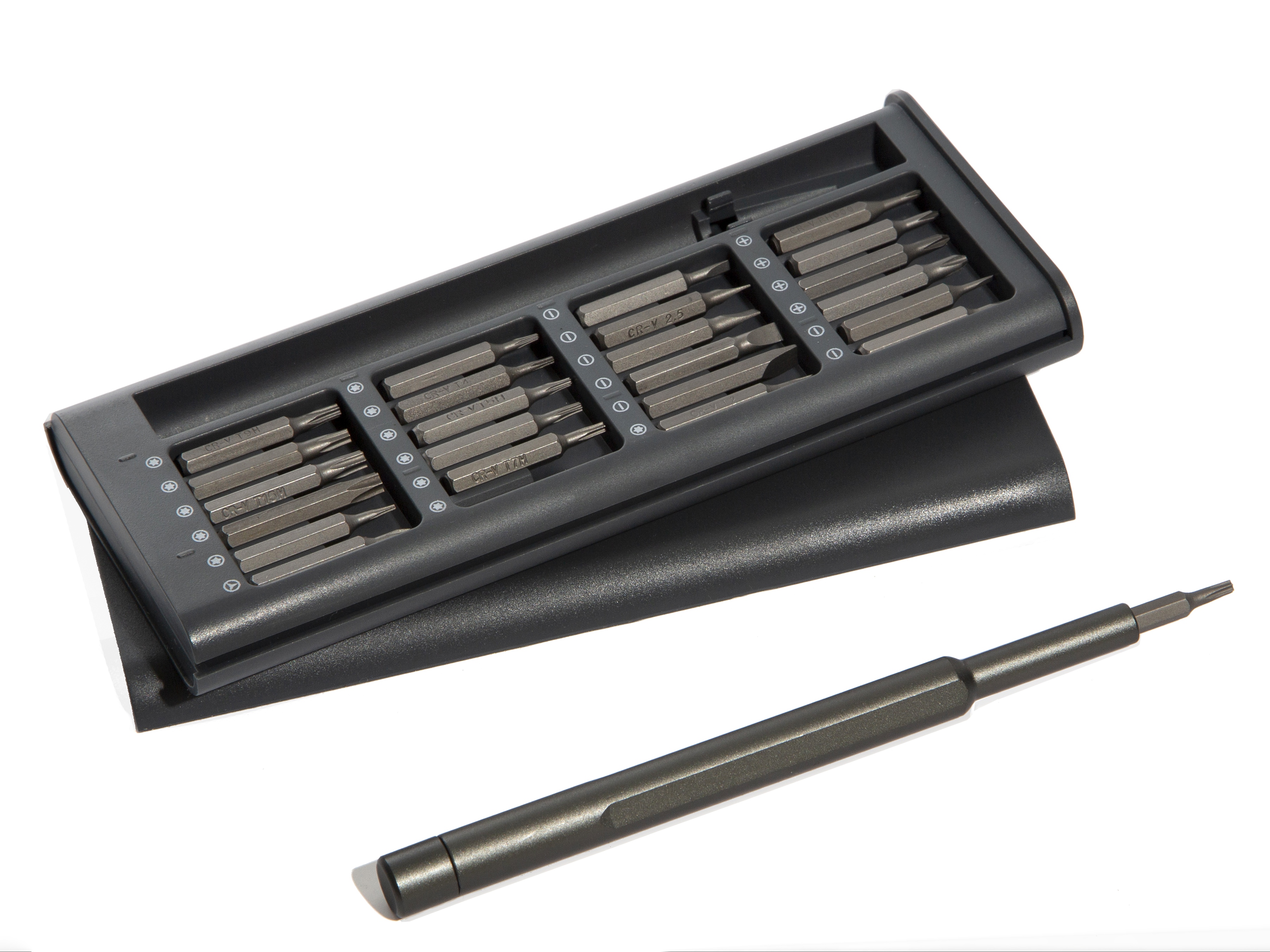Набор включает в себя 4 насадки и футляр, который можно использовать как рукоятку отвертки. В наборе учтены наиболее популярные виды насадок для отверток. Футляр надежно сохранит насадки и не даст им потеряться.