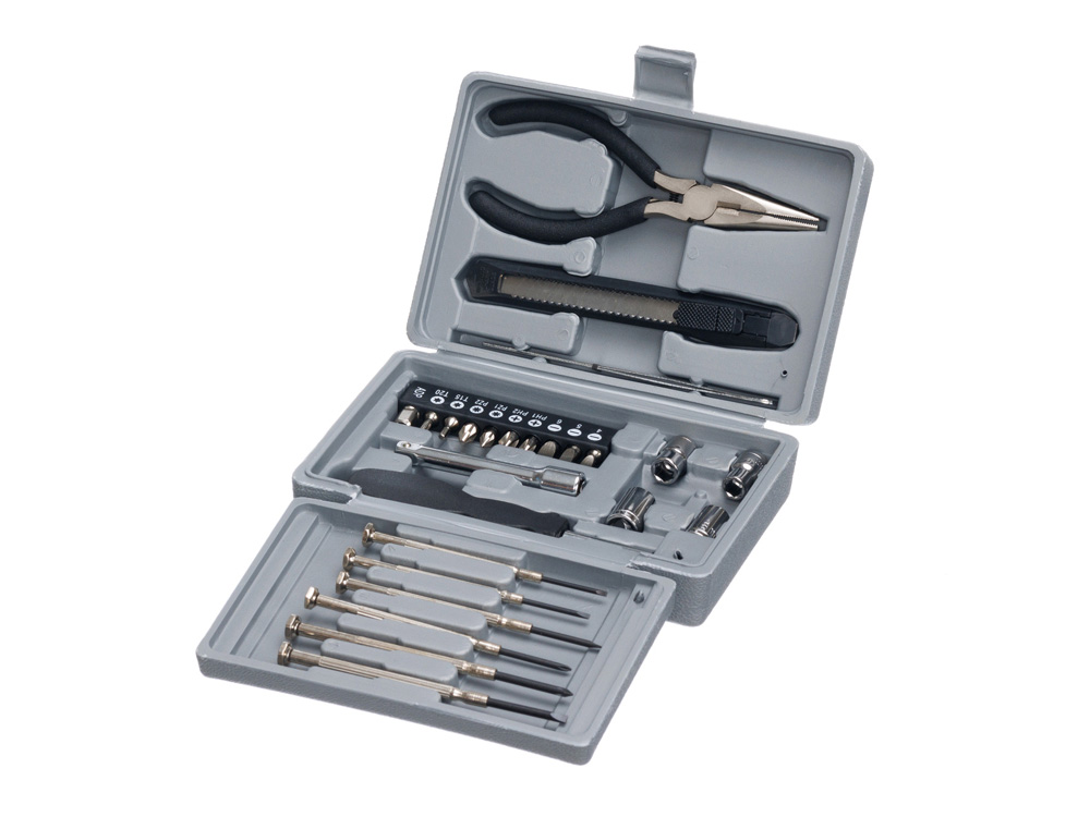 НАБОР ИНСТРУМЕНТОВ STINGER, 25 ПРЕДМЕТОВ Набор инструментов на 25 предметов STINGER W0402 поможет справиться с широким спектром хозяйственно-бытовых задач. Все инструменты изготовлены из высококачественной закаленной углеродистой стали с хромированным покрытием, рукоятки - из прочного углепластика (карбона). Набор включает в себя все основные инструменты, которые просто незаменимы при проведении мелкого ремонта, починки бытовой техники или сборки мебели. В КОМПЛЕКТЕ: 1. Рукоятка для бит - 1 шт. 2. Бита - 9 шт. 3. Адаптер для шестигранных головок - 1 шт. 4. Удлинитель для шестигранных головок - 1 шт. 5. Головка шестигранная (6/7/8/9) – 4 шт. 6. Нож канцелярский – 1 шт. 7. Отвёртка прецизионная шлицевая – 4 шт. 8. Отвёртка прецизионная крестовая – 2 шт. 8. Плоскогубцы – 1 шт. 9. Пинцет – 1 шт. ХАРАКТЕРИСТИКИ: Материал: углеродистая сталь, углепластик (карбон), кейс- пластик Размер: 164 х 107 х 49 мм