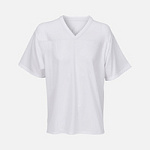 Кроеная футболка с боковыми швами, ворот – резинка, укрепляющая тесьма по вороту.