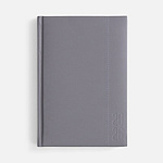 Ежедневник с твердой обложкой и тонированным обрезом, выполнен из материала Soft Touch, серый СС, дополнен ляссе в цвет обложки.