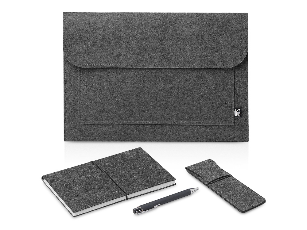 • Вместительный чехол для ноутбуков/планшетов до 14" из переработанного фетра, который служит упаковкой набора.