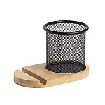 Подставка под телефон SATELLIT со стаканом для канцелярских принадлежностей, бежевый/черный,