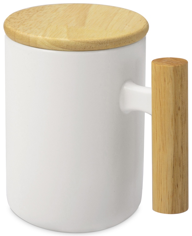 Кружка с ручкой и крышкой из каучукового дерева «Jeny»