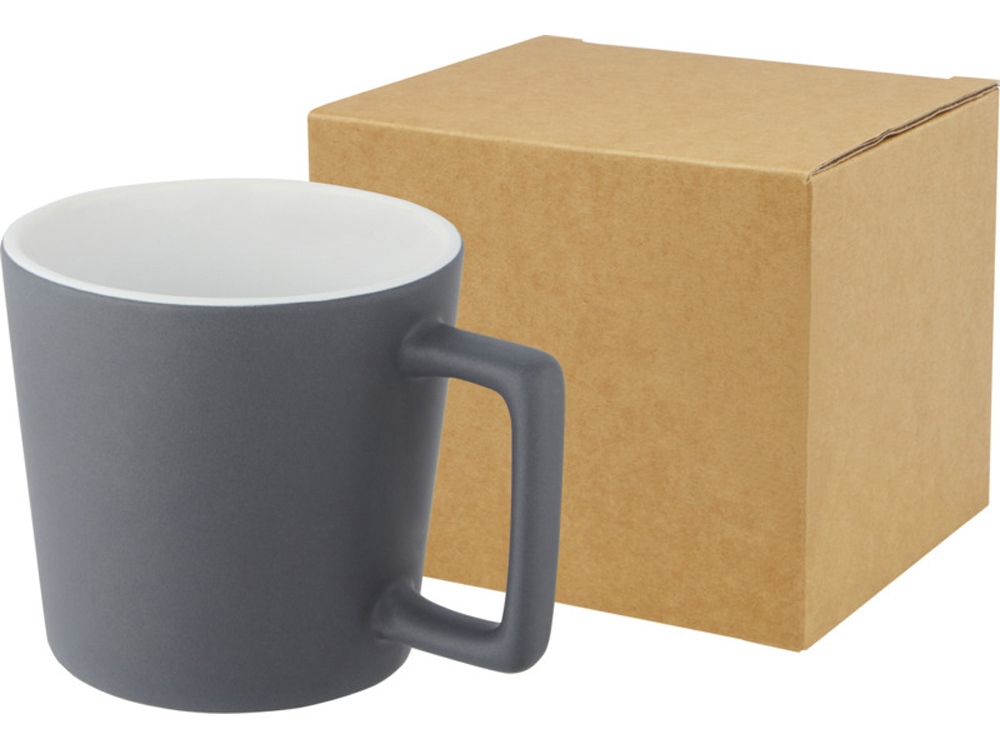 Керамическая кружка с современным дизайном и матовой отделкой. Объем 370 мл. Можно мыть в посудомоечной машине (все способы декорирования). Поставляется в подарочной коробке из переработанного картона. Керамика.
