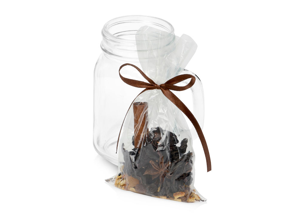 Подарочный набор «Глинтвейн» – прекрасный зимний подарок и знак внимания. В набор входят кружка-банка 330 мл, и специи для глинтвейна. Способ приготовления: Сухое/полусухое (желательно) красное вино (0,7 л) влить в эмалированную/огнеупорную посуду, добавить 3-4 ст.л. сахара (меда), высыпать содержимое пакета. Подогревать, помешивая деревянной ложкой, не доводя до кипения. По желанию можно добавить фрукты (цитрусовые), выдавив сок и добавив мякоть. Дать слегка настояться напитку (10 мин), t 70-75°, разлить по стаканам и подавать.
