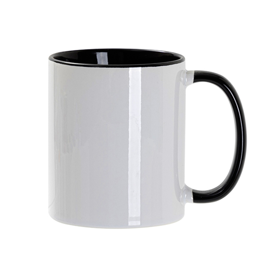 Кружка для сублимации, 330 мл, d=82 мм, стандарт А, белая, черная внутри, черная ручка