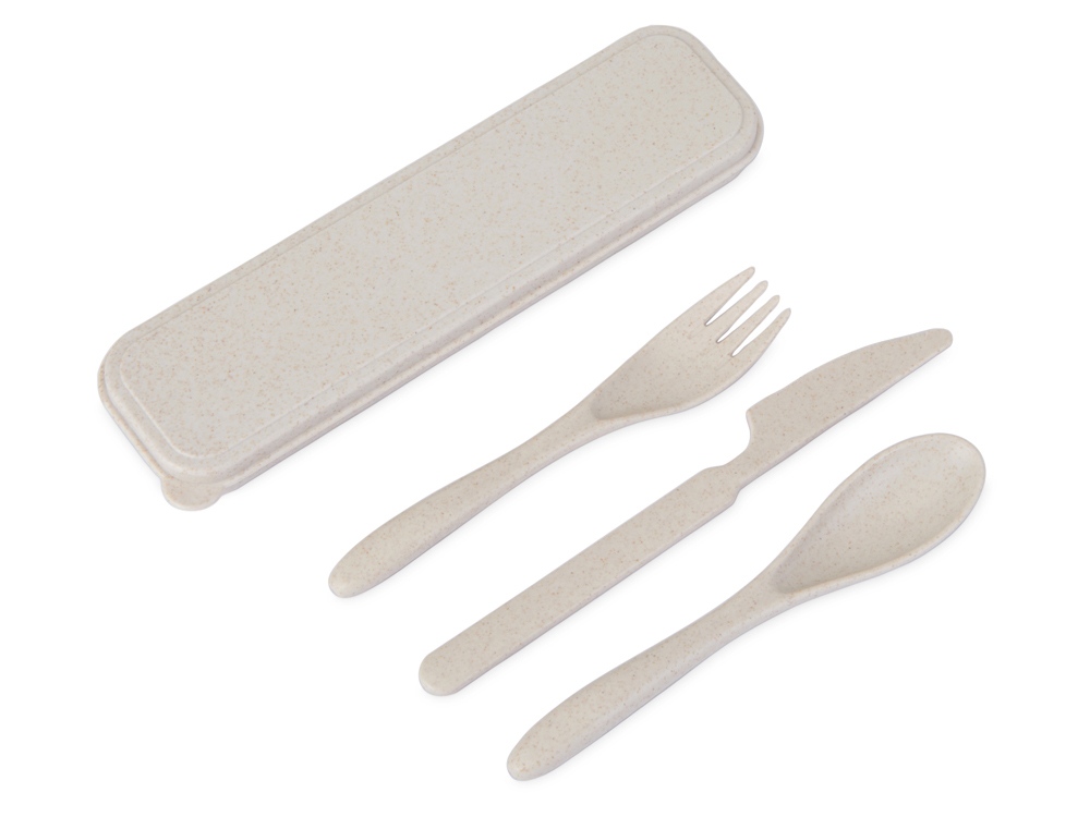 Набор столовых приборов Ron состоит из вилки, ножа и ложки. Они хранятся в удобном боксе, выполненном в едином стиле и цвете. Все приборы изготовлены на 50 % из бамбукового волокна и на 50 % - из полипропилена. Этот компактный и стильный набор удобно брать с собой на работу, в путешествие или на пикник.