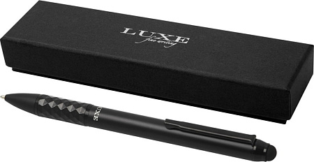 Шариковая ручка со стилусом и эксклюзивным дизайном сочетает в себе шикарный внешний вид и надежность. Корпус эргономичен для использования. Ручка заправлена черными чернилами и упакована в подарочную коробку LUXE. Ее можно дополнить перьевой ручкой или ручкой-роллером и использовать в качестве подарочного набора. Алюминий.