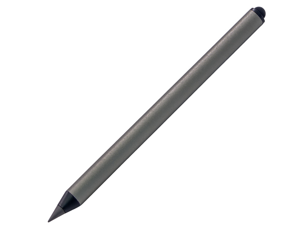 Карандаш изготовлен из переработанного алюминия. В отличие от обычных карандашей его не нужно точить, и он не пачкает руки. С обратной стороны карандаша есть стилус, которым удобно что-то делать на телефоне или планшете.