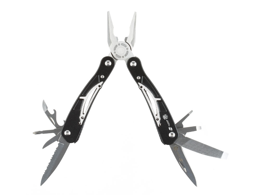 МНОГОФУНКЦИОНАЛЬНЫЙ ИНСТРУМЕНТ STINGER С НАБОРОМ ИЗ 13 ФУНКЦИЙ: 1. Острогубцы 2. Пассатижи 3. Кусачки 4. Лезвие большое 5. Лезвие с серрейторной кромкой 6. Отвёртка крестовая 7. Отвёртка шлицевая большая 8. Отвёртка шлицевая средняя 9. Отвёртка шлицевая малая 10. Открывалка для бутылок 11. Консервный нож 12. Шило 13. Напильник ХАРАКТЕРИСТИКИ: Материал инструментов: нержавеющая сталь 2Cr13 Материал рукояти: алюминий Длина: 104 мм Ширина: 45 мм Вес: 235 г В комплекте: чехол из синтетического материала Упаковка: складная картонная коробка