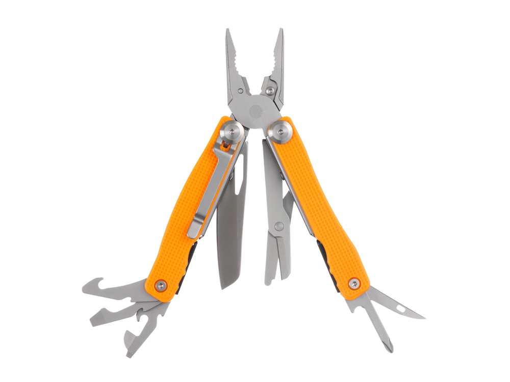 Мультифункциональный нож из нержавеющей стали и бамбуковым корпусом. 9 функций. В комплекте ремень для транспортировки из кожзаменителя.