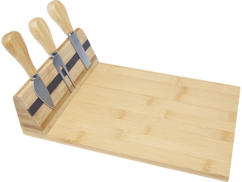 Набор для сыра и вина Mino. В этот набор из 5-ти предметов входит три ножа для мягкого сыра, твердого и зрелого сыра, стоппер для вина и штопор. Набор предлагается в деревянной подарочной коробке с шильдом 40 х 25 мм для лого.