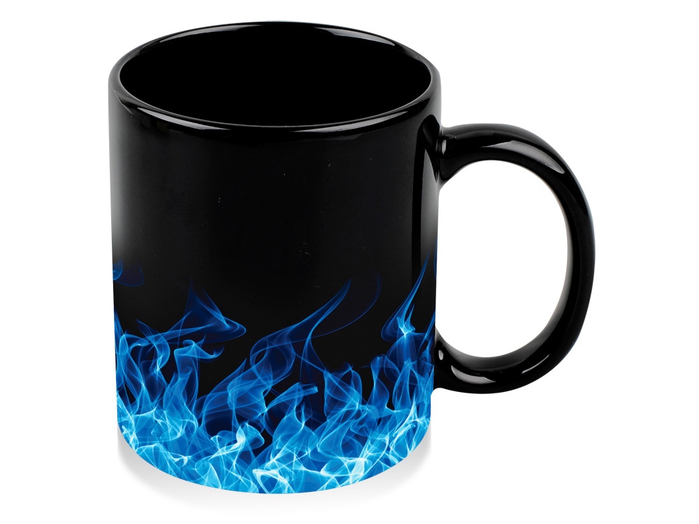 Керамическая кружка «Газ» создана, чтобы удивлять. Если в черную кружку налить горячий напиток, на ее стенках проявится изображение – голубое пламя. Когда кружка остынет, рисунок снова исчезнет. «Пылающая» кружка станет отличным подарком для любителей необычных вещей.