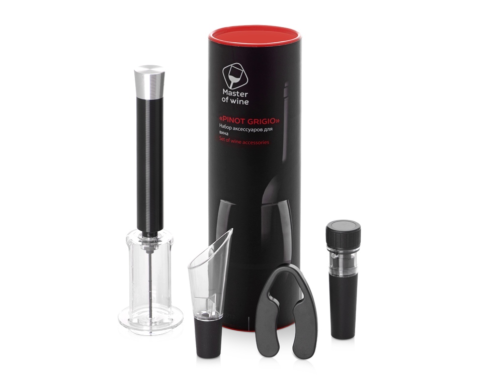 В винном наборе "Pinot Grigio" собрано все, что необходимо для откупоривания, подачи и длительного хранения вина. Аксессуары поставляются в эффектном красном тубусе и брендированном шубере. В состав комплекта входят: · пневматический штопор, который позволяет быстро откупорить бутылку и извлечь пробку без каких-либо повреждений; · вакуумная пробка, продлевающая срок хранения вина; · аэратор для переливания вина из бутылки в бокал и насыщения кислородом; · нож для срезания фольги. Набор аксессуаров станет функциональным и стильным подарком, который понравится ценителям благородных напитков. Внимание: чтобы смазка штопора не высохла, профилактически используйте его каждые две-три недели — это позволит вам сохранить механизм в надлежащем состоянии. Для плавной работы механизма рекомендуется заливать 1-2 капли растительного масла во внутреннюю трубку каждые 3-6 месяцев.