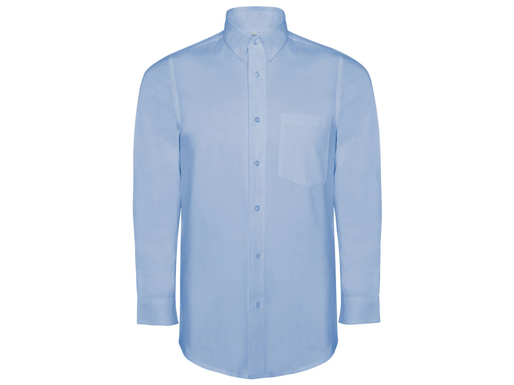 Мужская рубашка с длинным рукавом, накладной карман слева. Планка на пуговицах. Отложной воротник на стойке. Манжета регулируется по ширине с помощью 2-х пуговиц. Кокетка на спинке.