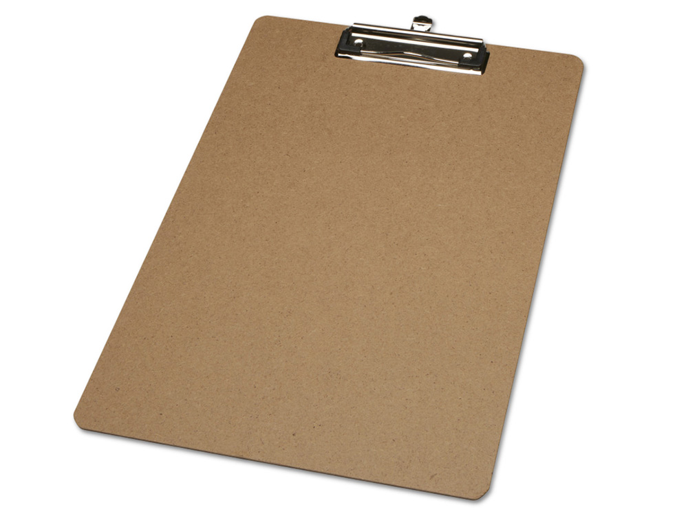 Удобный планшет из МДФ (древесноволокнистая плита средней плотности). Зажим, удерживающий лист бумаги, изготовлен из железа и пластика PP. Размер: 32 x 23 x 0,24 см. MDF.