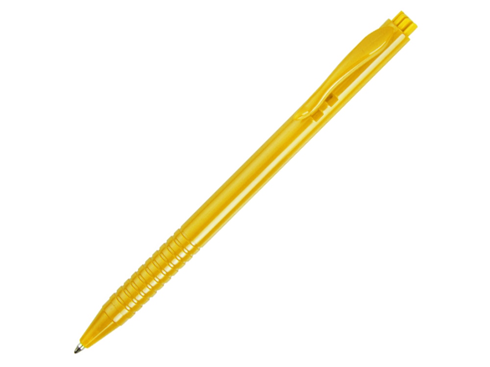 Ручка, интересная не только на вид, но и на ощупь. Гладкий изогнутый клип контрастирует с рифленым корпусом, дополнительно выделяя логотип компании.