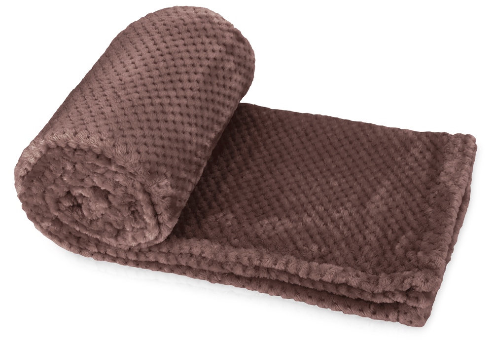 Плед с вывязанным логотипом и индивидуальным рисунком в фирменной цветовой гамме.