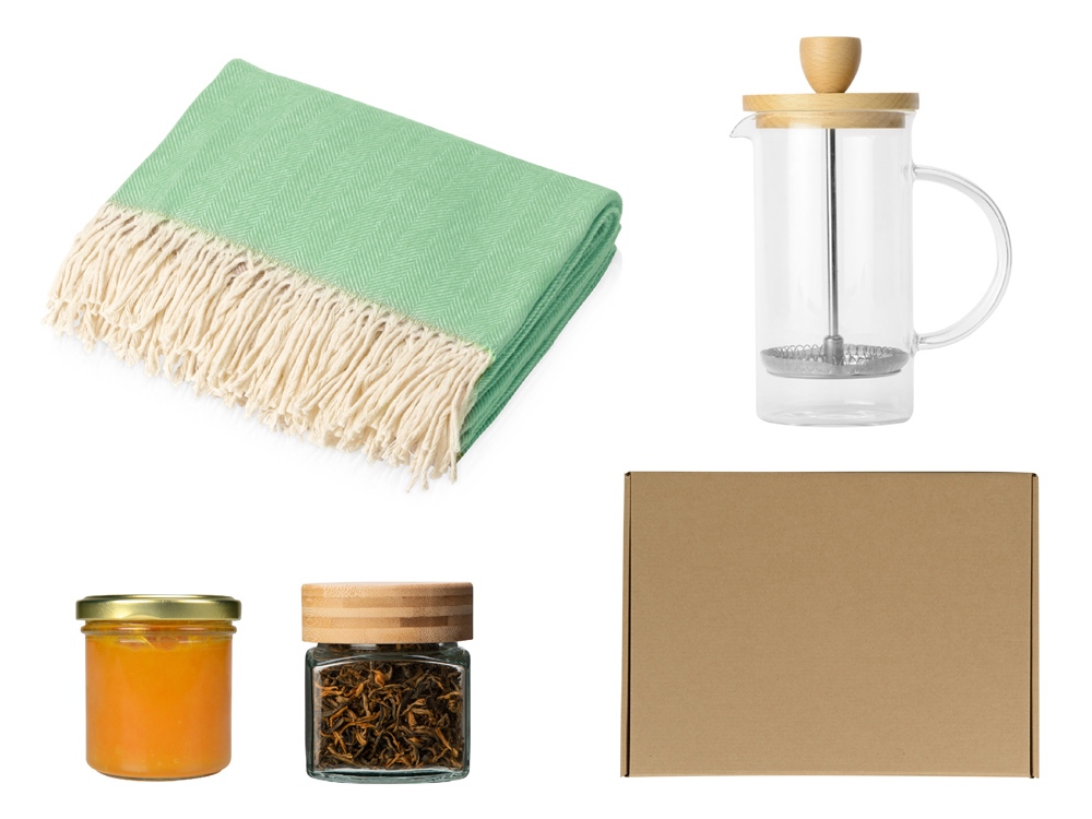 Такой набор — это прекрасный подарок для тех, кто ценит уют и любит наслаждаться ароматным чаем наедине с собой или в приятной компании. Элегантный френч-пресс с крышкой из букового дерева изготовлен из термостойкого боросиликатного стекла, а поршень и пресс-фильтр с уплотнительным кольцом из высококачественной пищевой нержавеющей стали марки 304. Его объем рассчитан на одну стандартную кружку или две небольшие кофейные чашки. Френч-пресс идеально подойдет для заваривания не только кофе, но и чая или любых травяных напитков. Плотный мягкий плед из натурального хлопка украшен бахромой. Можно использовать как теплое одеяло или как покрывало для украшения интерьера. Чай «Дянь Хун» отличается терпким вкусом с оттенком мёда, он хорошо омолаживает, бодрит и поднимает настроение на целый день. А неожиданный дуэт мандаринов и белого шоколада в варенье — настоящая находка для ценителей редких, оригинальных вкусов. - ручка френч-пресса не нагревается; - размер пледа 150 х 180 ( ±5) см; - вес чая: 40 гр; - стеклянная банка сохраняет аромат чая; - подарочная коробка входит в набор. Максимально рекомендованная температура воды для френч-пресса составляет 120℃. Не рекомендуется использовать в посудомоечной машине и микроволновой печи.