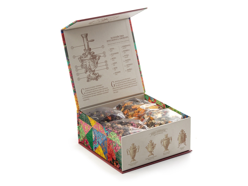 Чайный набор «ПО-СИБИРСКИ» — превосходный и запоминающийся подарок на все случаи жизни. Он состоит из уникального купажа чая и 100% натуральной леденцовой карамели со вкусом малины. Чай «ПО-СИБИРСКИ» сделан на основе купажа натуральных таёжных трав и ягод с добавлением мяты, шиповника и кусочков малины, которые оттеняют вкус байхового чёрного чая приятной ягодной свежестью. На дегустациях этот купаж неизменно получает высокие оценки любителей чёрного чая. Состав: - Чай по-сибирски: цветы яблони, чай чёрный, плоды шиповника, мята, лист брусники, кусочки сублимированной малины. - Карамель леденцовая со вкусом малины: сахар, патока, вода, регуляторы кислотности (лимонная кислота, молочная кислота), ароматизаторы идентичные натуральным, краситель: концентрат сладкого картофеля, редиса и яблока.