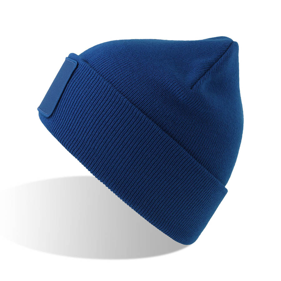 Шапка вязаная двойная Wind-S, с отворотом и патчем, ярко-синий, 100% переработанный полиэстер