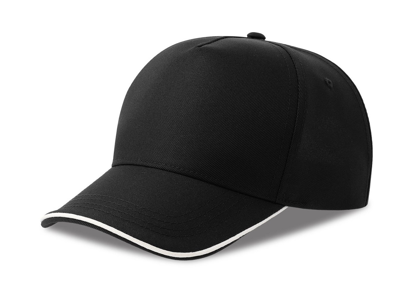 Бейсболка RECY FIVE PIPING, 5 клиньев, застежка-липучка, чёрный/белый, 100% полиэстер, 220 г/м2