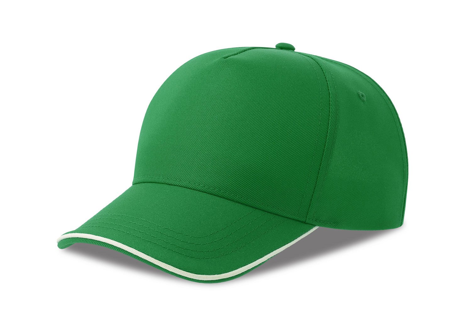 Бейсболка RECY FIVE PIPING, 5 клиньев, застежка-липучка, зелёный/белый, 100% полиэстер, 220 г/м2
